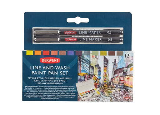 Derwent Line & Wash Set is a curated collection specifically for urban sketchers to include paint pans and water resistant pens.